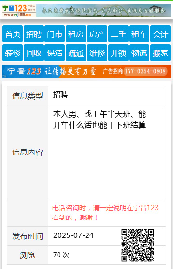 本人男、找上午半天班、能开车什么活也能干下班结算