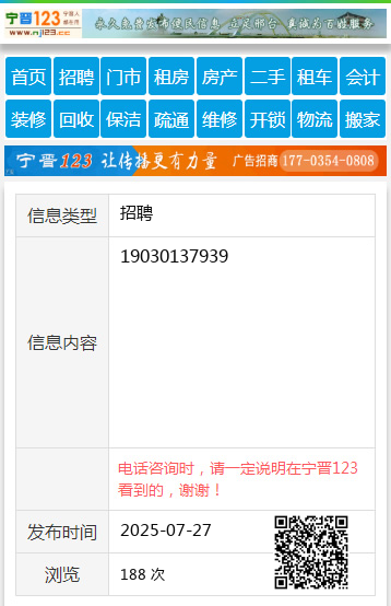 招聘【二栋羊杂割】 诚聘:1、服务员(5人)本地人优先有相关工作经验优先具有较强的沟通能力及服务意识,能吃苦耐劳年龄50岁以下,身体健康2、洗碗工(2人)本地人优先干净整洁 注重卫生年龄50岁以下,身体健康3、面点(2人)本地人优先有油饼、火烧等面点经验年龄50岁以下,身体健康联系人:冯先生 13223260222 聘