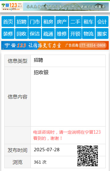 诚聘店员5名,店内会计2名,工作八小时,年龄20-40岁,地址:天一街电话:19233299583