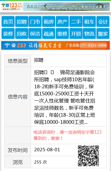 招聘 锦荷足道影院会所招聘,sap技师10名年龄(18-28)新手可免费培训,保底15000-25000工资十天开一次人性化管理 管吃管住招足浴技师数名,新手可免费培训,年龄(18-30)正常上班保底10000-18000工资十天开一次,管吃管住。马经理,这个还多几个字电话15830865353微信同步胡主管13393099873微信同步 聘 |
