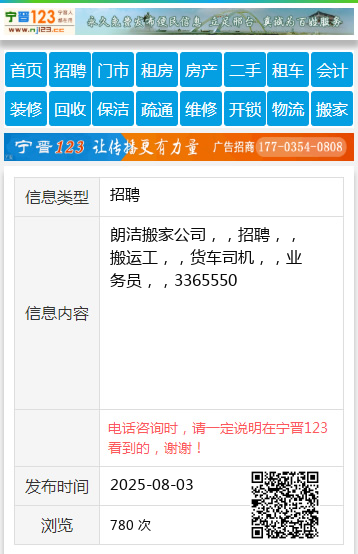 朗洁搬家公司,,招聘,,搬运工,,货车司机,,业务员,,3365550