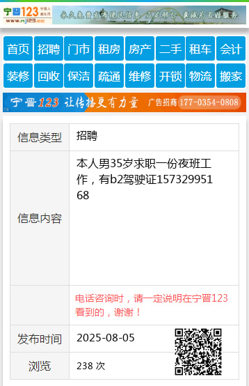 本人男35岁求职一份夜班工作,有b2驾驶证15732995168