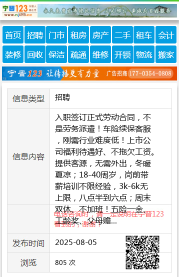 入职签订正式劳动合同,不是劳务派遣!车险续保客服,刚需行业难度低!上市公司福利待遇好、不拖欠工资。提供客源,无需外出,冬暖夏凉;18-40周岁,岗前带薪培训不限经验,3k-6k无上限,八点半到六点;周末双休、不加班!五险一金、工龄奖、父母赡养津贴、晋升空间、带薪休假等福利多多。开发区河北工业大学科技园 /桥西居然之家。欢迎咨询15132997316(同微) |