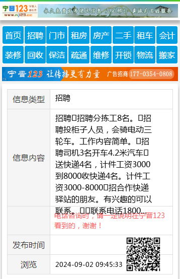 招聘✅招聘分拣工8名。✅招聘投柜子人员,会骑电动三轮车。工作内容简单。✅招聘司机3名开车4.2米汽车✅送快递4名,计件工资3000到8000收快递4名。计件工资3000-8000✅招合作快递驿站的朋友。有兴趣的可以联系。☎️联系电话18003299876。 182 3302 7700,180 0319 6066招聘驿站工作人员1名,在锦绣鹏程 聘 |