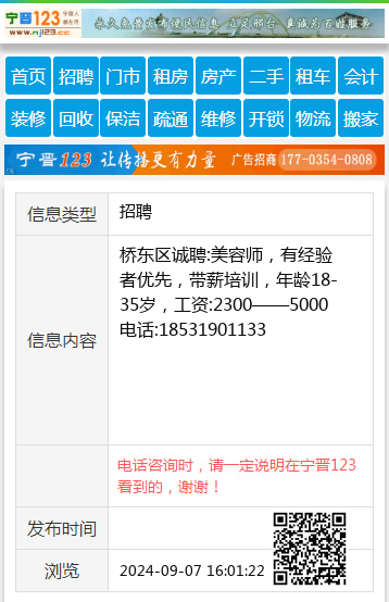 桥东区诚聘:美容师,有经验者优先,带薪培训,年龄18-35岁,工资:2300——5000电话:18531901133 【电话咨询时,请一定说明在邢台123谢谢!】 |