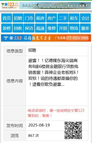 避雷!!亿德隆东海尖端商务B座6楼做金融银行贷款电销客服!犇神企业老板姓li!双标!说的待遇都是骗你的!逮着你欺负避雷