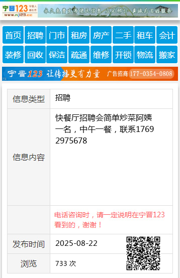 快餐厅招聘会简单炒菜阿姨一名,中午一餐,联系17692975678