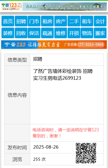 了然广告墙体彩绘装饰 招聘实习生男电话2699123