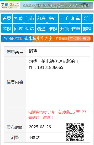 想找一份电销代理记账的工作,19131836665