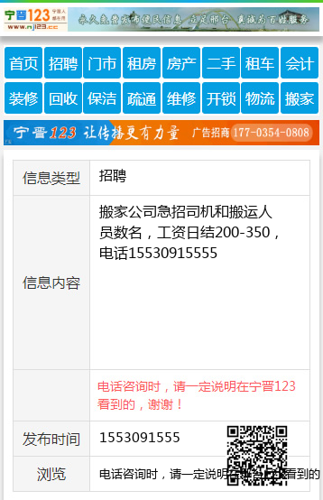 搬家公司急招司机和搬运人员数名,工资日结200-350,电话15530915555