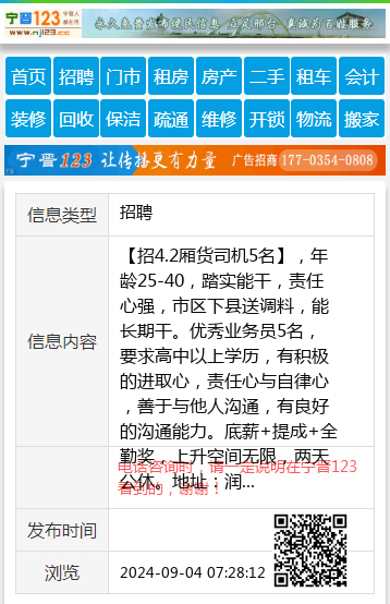 【招4.2厢货司机5名】,年龄25-40,踏实能干,责任心强,市区下县送调料,能长期干。优秀业务员5名,要求高中以上学历,有积极的进取心,责任心与自律心,善于与他人沟通,有良好的沟通能力。底薪+提成+全勤奖,上升空间无限,两天公休。地址:润恒城市场。18830900666 ,18832951993