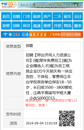 招聘【邢台济民人力资源公司】[福]常年免费招工[福]为企业精选人才[福]为员工细挑企业☎️今天明天有一块出发的,不体检,零费用①丰台学校政府单位保安18--50岁,长白班3500--3800管吃住,②昌平高端写字楼大厦,小伙5000☎️15127989868公众号,服务完善,安排快捷, 聘