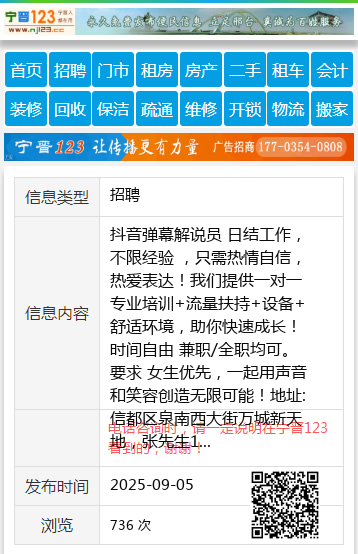 抖音弹幕解说员 日结工作,不限经验 ,只需热情自信,热爱表达!我们提供一对一专业培训+流量扶持+设备+舒适环境,助你快速成长!时间自由 兼职/全职均可。要求 女生优先,一起用声音和笑容创造无限可能!地址:信都区泉南西大街万城新天地,张先生13930908716 15075969292