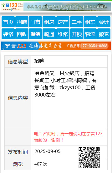 冶金路又一村火锅店,招聘长期工.小时工.保洁阿姨,有意向加微:zkzys100,工资3000左右