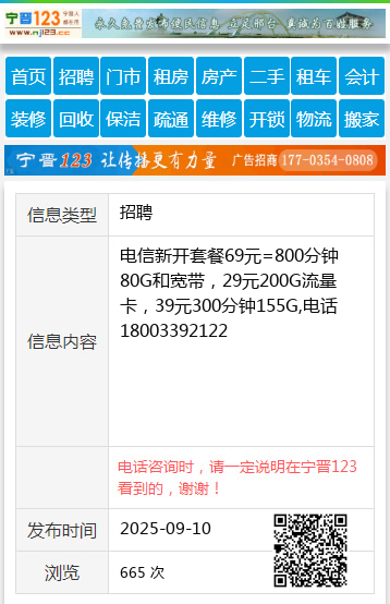 电信新开套餐69元=800分钟80G和宽带,29元200G流量卡,39元300分钟155G,电话18003392122