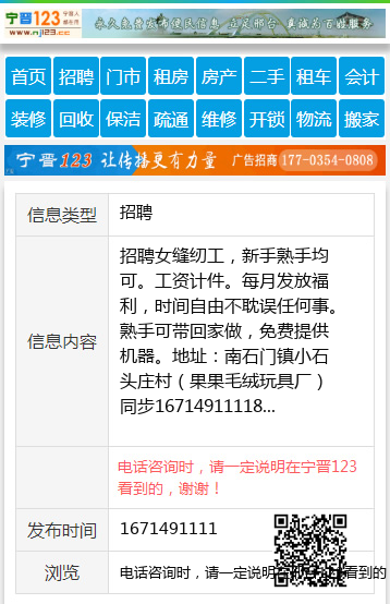 招聘女缝纫工,新手熟手均可。工资计件。每月发放福利,时间自由不耽误任何事。熟手可带回家做,免费提供机器。地址:南石门镇小石头庄村(果果毛绒玩具厂)同步16714911118