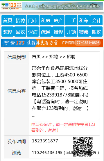 | 防骗提醒: | 邢台123(www.xingtai.wang)提醒您:手工活、网络兼职、刷单,都是骗子!凡以各种名义收取费用的都是骗子!找工作是往兜里挣钱,让你往外掏钱的都是骗子!异地招聘请提高警惕,谨防诈骗! |
