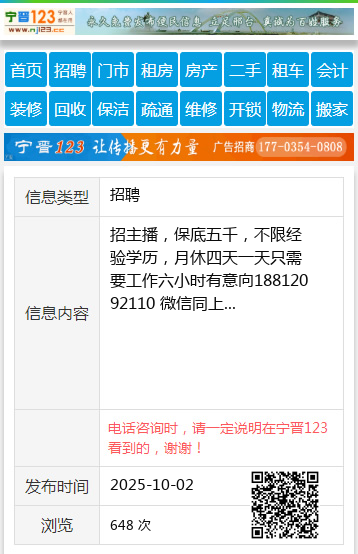 招主播,保底五千,不限经验学历,月休四天一天只需要工作六小时有意向18812092110 微信同上