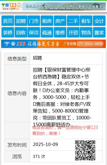 招聘【银保财富管理中心邢台桥西急聘】稳定双休+节假日全休,28-45岁大专可联!✅办公室文员:内勤事务,3000-5000,轻松上手✅售后客服:对接老客户/政策告知,5000-8000✅管理岗:带团队管员工,10000-15000高薪舒适办公环境,无加班压力,家门口的好工作!咨询:18631995567 / 13739695355 聘 |