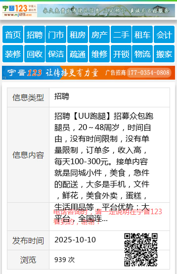 招聘【UU跑腿】招募众包跑腿员,20~48周岁,时间自由,没有时间限制,没有单量限制,订单多,收入高,每天100-300元。接单内容就是同城小件,美食,急件的配送,大多是手机,文件,鲜花,美食外卖,蛋糕,生活用品等,平台优势:大平台,全国连锁,人多单多,靠谱有保障,咨询电话15630958386微信同步,座机☎️0319~3087683 聘 |