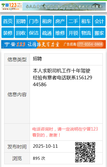 本人求职司机工作十年驾驶经验有意者电话联系15612944586
