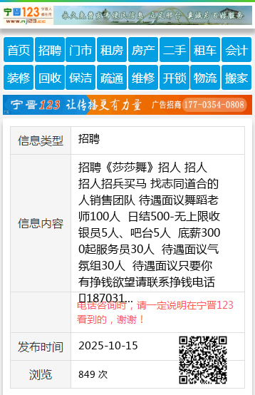 招聘《莎莎舞》招人 招人 招人招兵买马 找志同道合的人销售团队 待遇面议舞蹈老师100人 日结500-无上限收银员5人、吧台5人 底薪3000起服务员30人 待遇面议气氛组30人 待遇面议只要你有挣钱欲望请联系挣钱电话☎18703194448(同微信) 聘
