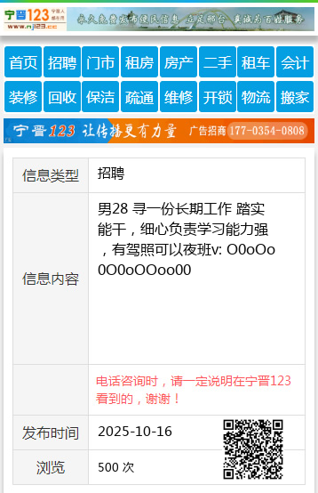 男28 寻一份长期工作 踏实能干,细心负责学习能力强,有驾照可以夜班v: O0oOo0O0oOOoo00