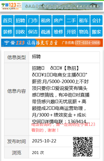 招聘 🔥【急招】🔥1️⃣电商女主播💰薪资:月/5000-20000上不封顶只要你:✔爱说爱笑有镜头感✔想搞钱,有冲劲✔对直播带货感兴趣✅无忧底薪+高额提成2️⃣电商运营助理,月/3000+绩效奖金+成长空间☎详情电联:13694145025(微信同号)🏡地址:东门里附近 聘