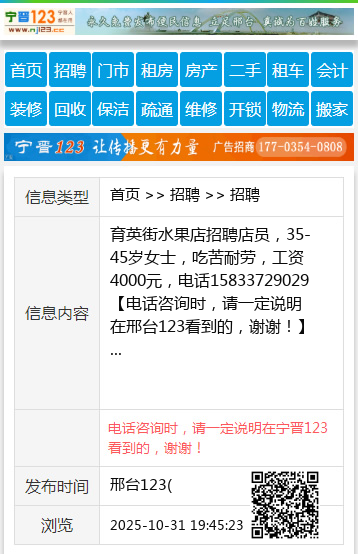 育英街水果店招聘店员,35-45岁女士,吃苦耐劳,工资4000元,电话15833729029 【电话咨询时,请一定说明在邢台123看到的,谢谢!】 |