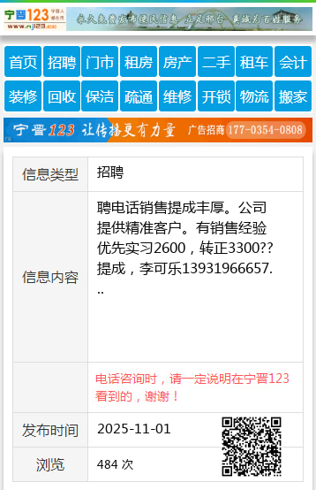 聘电话销售提成丰厚。公司提供精准客户。有销售经验优先实习2600,转正3300??提成,李可乐13931966657 【电话咨询时,请一定说明在邢台123看到的,谢谢!】 |