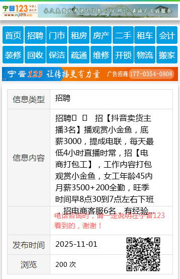 招聘 招【抖音卖货主播3名】播观赏小金鱼,底薪3000,提成电联,每天最低4小时直播时常,招【电商打包工】,工作内容打包观赏小金鱼,女工年龄45内月薪3500+200全勤,旺季时间早8点30到7点左右下班,招电商客服6名,有经验有限,培训结束后可在家上岗,电17531997717,地址团结路与滨江路交叉口,顺隆种植园 聘