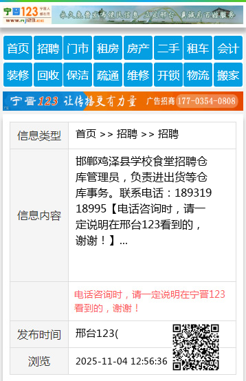 邯郸鸡泽县学校食堂招聘仓库管理员,负责进出货等仓库事务。联系电话:18931918995 【电话咨询时,请一定说明在邢台123看到的,谢谢!】 |