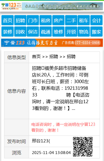 招聘 福美多超市招聘储备店长20人,工作时间:可倒班可长白班,薪资:3000左右,联系电话:19213199833 聘