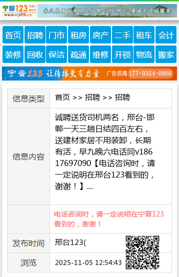诚聘送货司机两名,邢台-邯郸一天三趟日结四百左右,送建材家居不用装卸,长期有活,早九晚六电话同v18617697090 【电话咨询时,请一定说明在邢台123看到的,谢谢!】 |