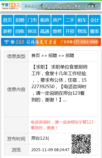 【求职】 求职单位食堂厨师工作,食堂十几年工作经验,,要求有公休,住宿,15227392550, 【电话咨询时,请一定说明在邢台123看到的,谢谢!】 |