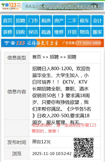 招聘日入800-1200。欢迎各届毕业生、大学生加入,小白可培养!!《KTV、KTV长期招聘全职、兼职、酒水促销员50名!》要求满18周岁、只要你有挣钱欲望,我们来帮你满足。《少爷各5名》日收入200-500,要求满18周岁、服从管理、有无经验均可。《营销经理20名》月收入2w-5w、提成高,团队气氛和谐。联系:17331927575(同微信 聘 【电话咨询时,请一定说明在邢台123看到的,谢谢!】 |