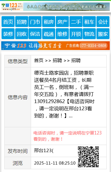 | 防骗提醒: | 邢台123(www.xingtai.wang)提醒您:手工活、网络兼职、刷单,都是骗子!凡以各种名义收取费用的都是骗子!找工作是往兜里挣钱,让你往外掏钱的都是骗子!异地招聘请提高警惕,谨防诈骗! |