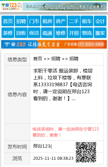 求职干零活 搬运装卸,楼层上料,垃圾下楼等,有意联系13333198837