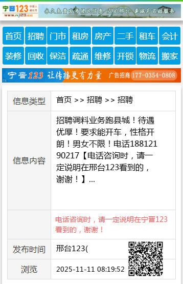 招聘调料业务跑县城!待遇优厚!要求能开车,性格开朗!男女不限!电话18812190217