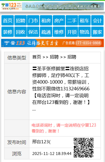 | 防骗提醒: | 邢台123(www.xingtai.wang)提醒您:手工活、网络兼职、刷单,都是骗子!凡以各种名义收取费用的都是骗子!找工作是往兜里挣钱,让你往外掏钱的都是骗子!异地招聘请提高警惕,谨防诈骗! |