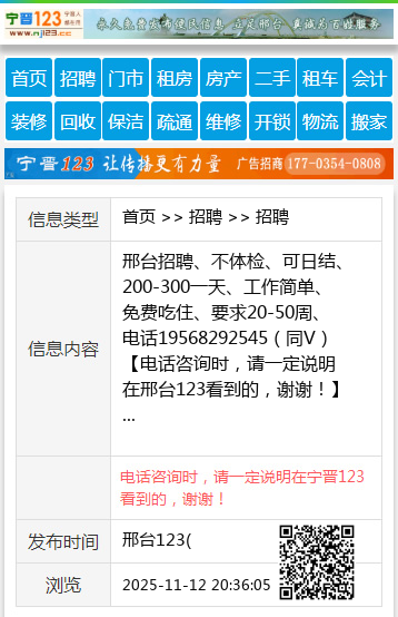 邢台招聘、不体检、可日结、200-300一天、工作简单、免费吃住、要求20-50周、电话19568292545(同V)