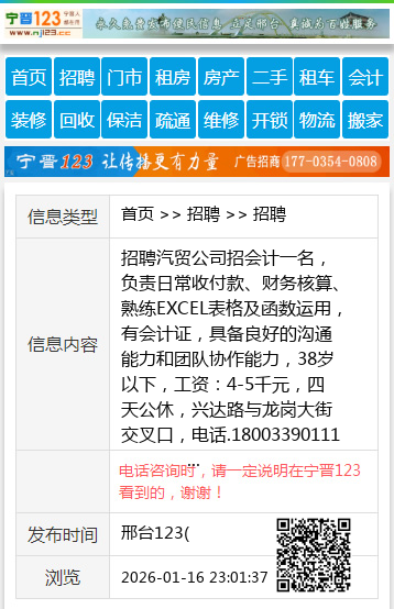 | 防骗提醒: | 邢台123(www.xingtai.wang)提醒您:手工活、网络兼职、刷单,都是骗子!凡以各种名义收取费用的都是骗子!找工作是往兜里挣钱,让你往外掏钱的都是骗子!异地招聘请提高警惕,谨防诈骗! |