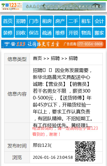 招聘 因业务发展需要,新华北路晨光文具配送中心诚聘:【营业员】【销售员】若干名男女不限 ,薪资3000-5000元,【送货师傅】年龄45岁以下,开箱货经验一年以上,要求工作认真负责,有团队精神。不招短期工。有工作经验优先。黄经理17731918008 ,陈经理13131999459 聘 【电话咨询时,请一定说明在邢台123看到的,谢谢!】 |