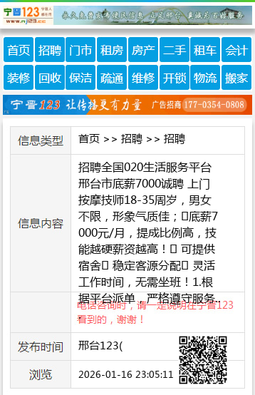 招聘全国020生活服务平台邢台市底薪7000诚聘 上门按摩技师18-35周岁,男女不限,形象气质佳;✅底薪7000元/月,提成比例高,技能越硬薪资越高!✅ 可提供宿舍✅ 稳定客源分配✅ 灵活工作时间,无需坐班!1.根据平台派单,严格遵守服务规范和操作流程2.具备基础按摩相关技能优先(无经验免费培训)3.沟通能力强,有服务意识电话:18330906971 同V 聘 【电话咨询时,请一定说明在邢台123看到的,谢谢!】 |
