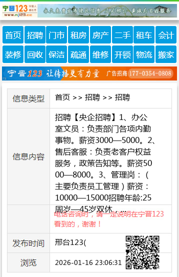 招聘【央企招聘】1、办公室文员:负责部门各项内勤事物。薪资3000—5000。2、售后客服:负责老客户权益服务,政策告知等。薪资5000—8000。3、管理岗:(主要负责员工管理)薪资:10000—15000招聘年龄:25周岁—45岁双休,节假日正常休息。工作地点:邢台市信都区电话📱:18631995567、13739695355 聘 【电话咨询时,请一定说明在邢台123看到的,谢谢!】 |