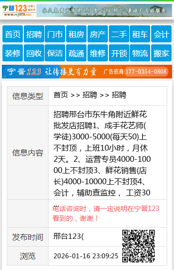 招聘邢台市东牛角附近鲜花批发店招聘1、成手花艺师(学徒)3000-5000(每天50)上不封顶,上班10小时,月休2天。2、运营专员4000-10000上不封顶3、鲜花销售(店长)4000-10000上不封顶4、会计,辅助查监控, 工资3000以上岗位45岁以下,公休两天,上班十小时,交五险 ☎:15127913889欢迎有梦想的您加入 聘 【电话咨询时,请一定说明在邢台123看到的,谢谢!】 |