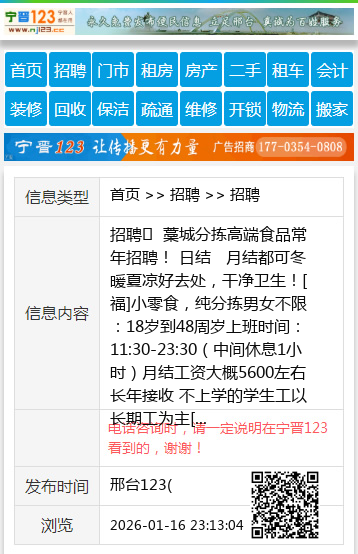 | 防骗提醒: | 邢台123(www.xingtai.wang)提醒您:手工活、网络兼职、刷单,都是骗子!凡以各种名义收取费用的都是骗子!找工作是往兜里挣钱,让你往外掏钱的都是骗子!异地招聘请提高警惕,谨防诈骗! |