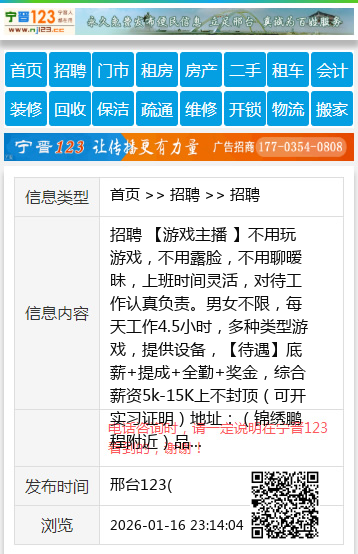 招聘 【游戏主播 】不用玩游戏,不用露脸,不用聊暧昧,上班时间灵活,对待工作认真负责。男女不限,每天工作4.5小时,多种类型游戏,提供设备,【待遇】底薪+提成+全勤+奖金,综合薪资5k-15K上不封顶(可开实习证明)地址:(锦绣鹏程附近)品乐广场404房间,电话:18714276606微信同号 聘 【电话咨询时,请一定说明在邢台123看到的,谢谢!】 |