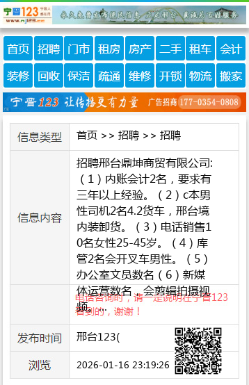 | 防骗提醒: | 邢台123(www.xingtai.wang)提醒您:手工活、网络兼职、刷单,都是骗子!凡以各种名义收取费用的都是骗子!找工作是往兜里挣钱,让你往外掏钱的都是骗子!异地招聘请提高警惕,谨防诈骗! |
