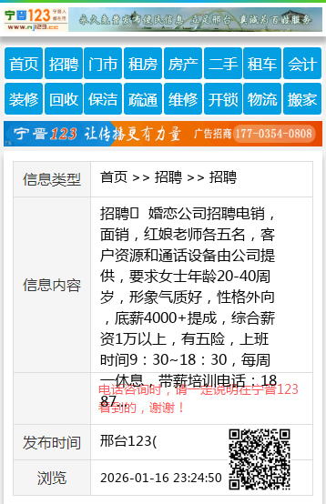 招聘 婚恋公司招聘电销,面销,红娘老师各五名,客户资源和通话设备由公司提供,要求女士年龄20-40周岁,形象气质好,性格外向,底薪4000+提成,综合薪资1万以上,有五险,上班时间9:30~18:30,每周一休息,带薪培训电话:18875757100同微信,地址:世贸天街,工作环境好,干净明亮办公室,老板事少,好说话,想挣钱的赶紧来。 聘 【电话咨询时,请一定说明在邢台123看到的,谢谢!】 |